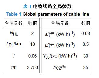 表 1 電纜線路全局參數(shù)
