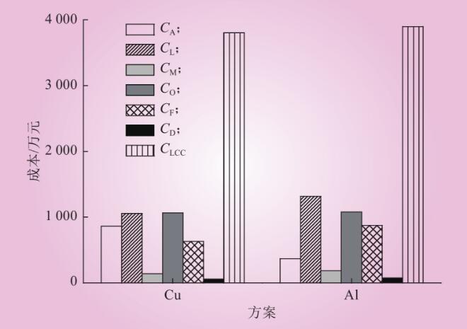 (2)案例中鋁芯電纜雖然購置成本更低,但敷設(shè)成本和運行維護成本、故障損失成本等后期運行成本均處于劣勢,使得總LCC更大,故銅或鋁芯電纜的選擇不應(yīng)只看初始投資。