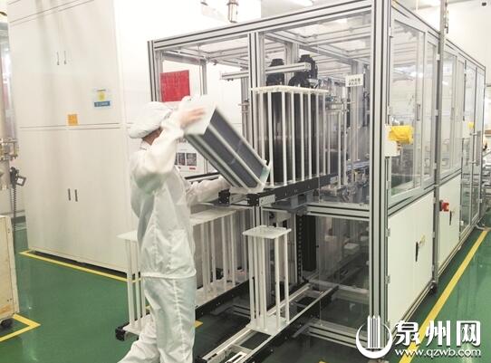 作為一家集晶體硅太陽能電池及組件研發(fā)、制造、銷售于一體的高新技術(shù)企業(yè),近年來,陽光中科(福建)能源股份有限公司保持著持續(xù)平穩(wěn)增長的發(fā)展態(tài)勢。穿戴上防塵鞋、帽、服、口罩,記者走進(jìn)陽光中科的生產(chǎn)車間,看到一條條自動化流水線、一臺臺自動化設(shè)備正在忙碌而有序運(yùn)轉(zhuǎn)著,相較于傳統(tǒng)生產(chǎn)車間,這里的現(xiàn)場工作人員已大幅減少。中央空調(diào)的涼風(fēng)在車間內(nèi)回旋,室內(nèi)始終保持著恒溫的狀態(tài),舒適宜人。